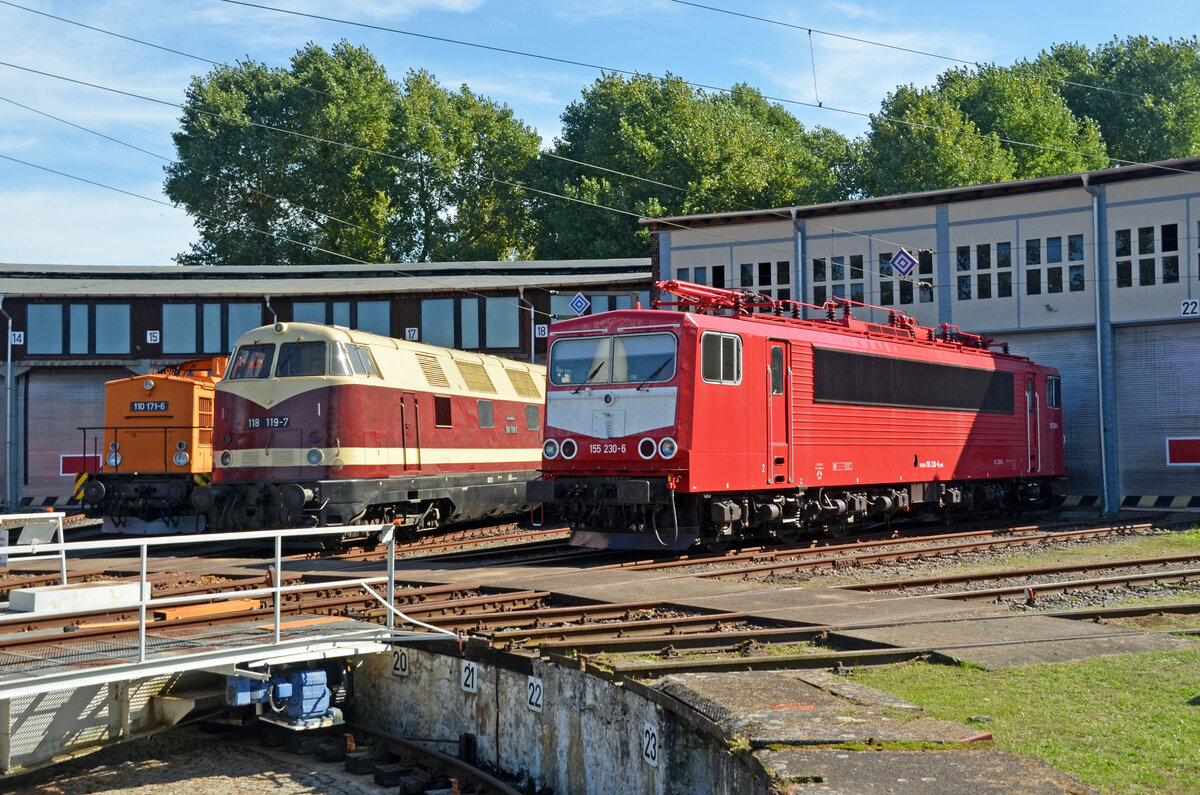Anlässlich des Orientrot-Treffens wurde 229 181-3 (119 181-6) auf die Drehscheibe des Bahnbetriebswerks Lutherstadt Wittenberg geholt.