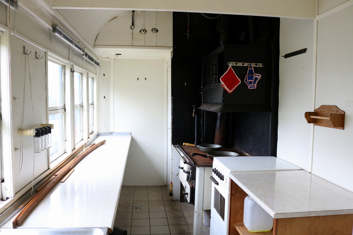 Hier wurde noch wirklich gekocht: Blick in die Küche des Altbau-Salonspeisewagens 60 50 88 40 052-4 des Regierungszuges der DDR (urspr. Mitropa-Speisewagen), der im ehemaligen Bw Lutherstadt Wittenberg anlässlich der jährlichen Bahnaktionstage steht. [24.9.2017 | 14:17 Uhr]