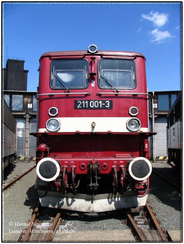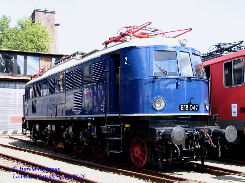 E-Lokparade beim alljährlichen Bw-Fest in Lutherstadt Wittenberg. Auch wenn in diesem Jahr die modernen Railion-Loks fehlten, war es wieder ein gelungenes Fest. 19.08.06 Harald Neumann
