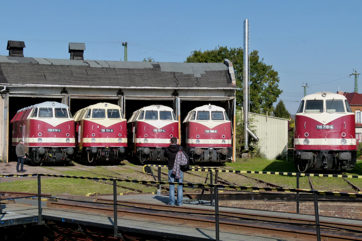 09. Oktober 2004 Eisenbahnfest des Thüringer Eisenbahnvereins (TEV) im ehemaligen Bw Weimar, Die ehemalige DR 119 158 der DR ist im Bw Berlin Schöneweide stationiert.