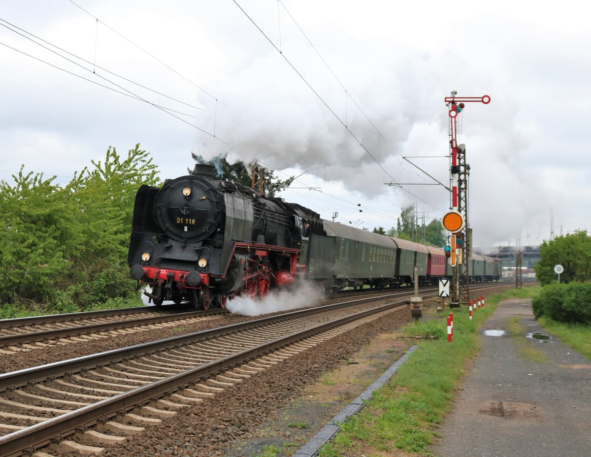 Historische Eisenbahn Frankfurt 01 118 mit einen Sonderzug am 28.04.19 in Hanau Südausfahrt