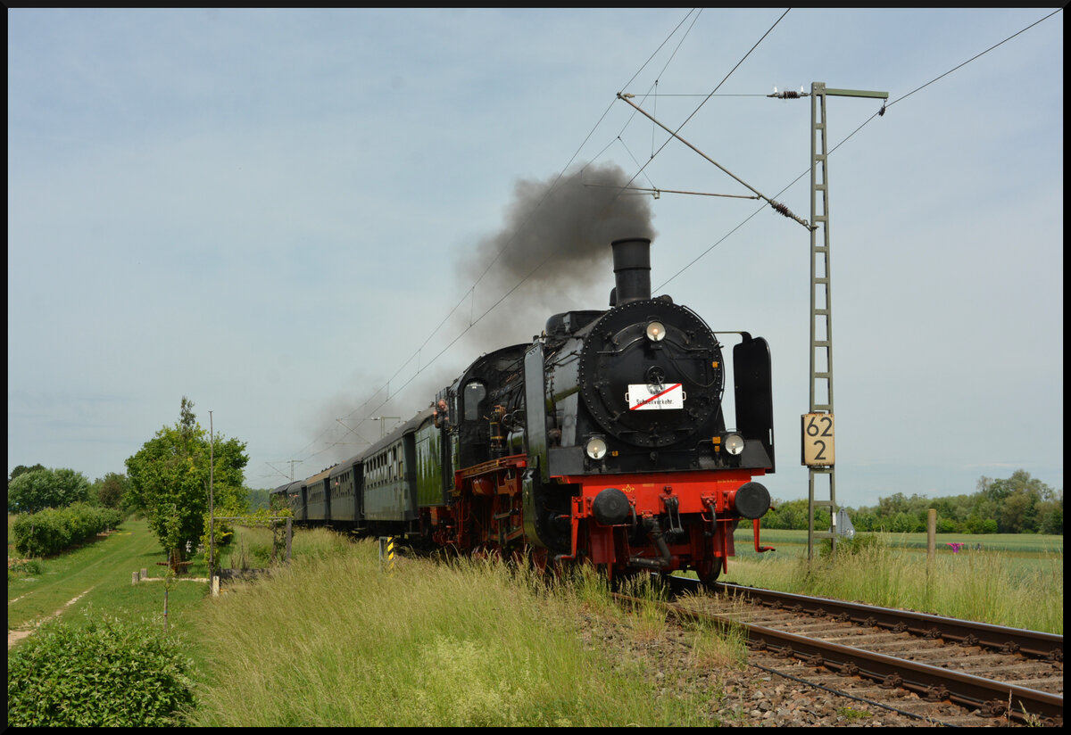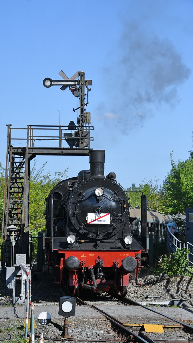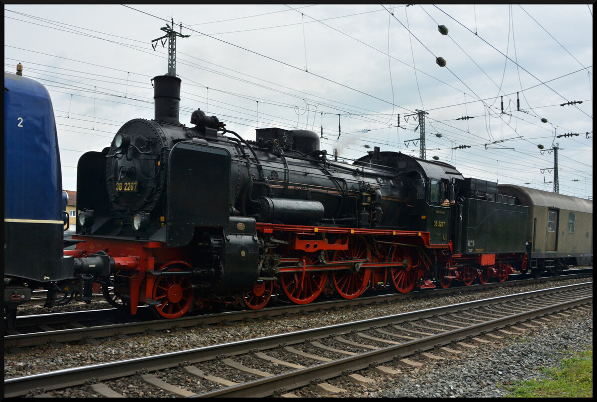 Die preußische P8 (38 2267) des Eisenbahnmuseums Bochum-Dahlhausen anlässlich des 4. Eisenbahnfestes in Nördlingen als Gastlokomotive am 31.5.25. Flo Weiss