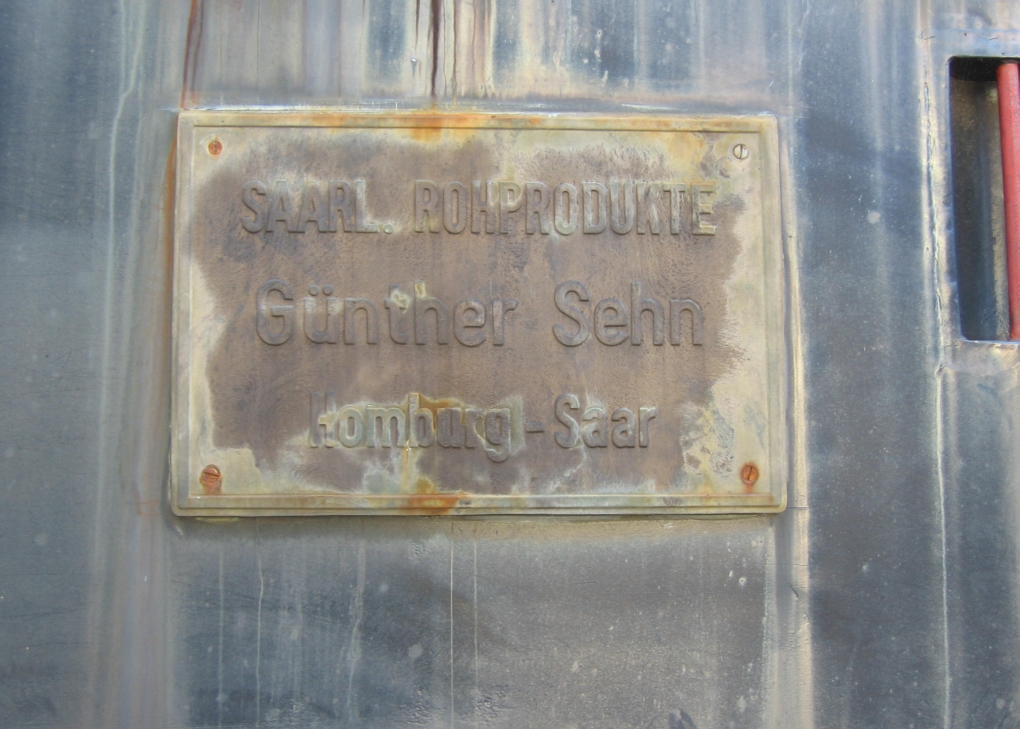 Fabrikschild die Rangierlok von Saarland Rohlprodukte, Günther Sehn. Sie war 15/10/2005 in Beeden (Saar) (bei Homburg) fotografiert.