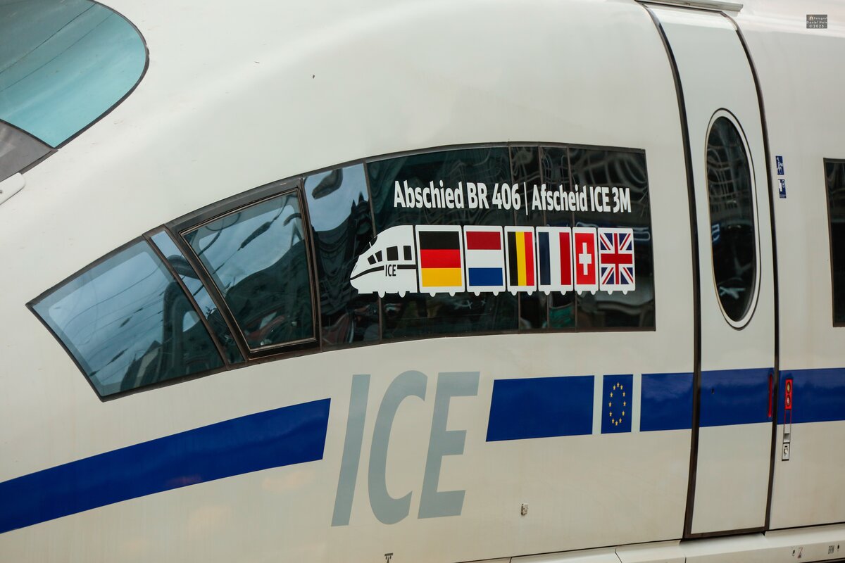 Ein letztes Mal durch die Niederlande. Am 12.4.25 hatte die Baureihe 406 ihre Abschiedsfahrt von Hannover nach Amsterdam und weiter Roermond nach Frankfurt. Mittlerweile wird die Baureihe 406 nur noch im Inlandsverkehr eingesetzt und ihr Nachfolger die Baureihe 408 hat die Linien nach Amsterdam und Brüssel übernommen. Auch 406 001 zeigt Stolz die Flaggen der Länder in welchen die Baureihe 406 schon gewesen ist. Leider blieb es bei Großbritannien bei einem einmaligen Besuch, eine Regelleistung kam nicht zustande.