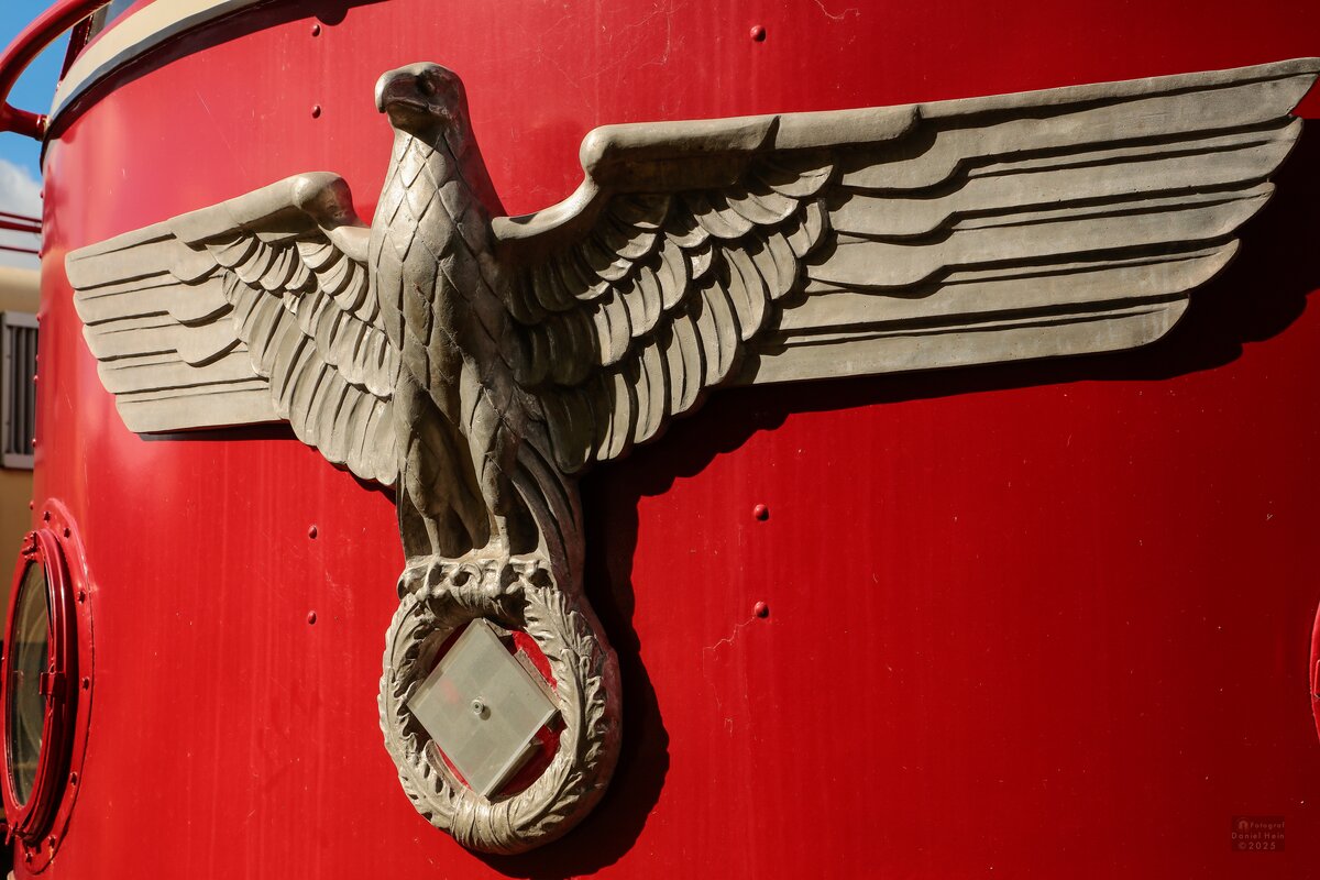 Der Reichsadler an der Lokfront von E19 12 im DB Museum Koblenz, September 2025.
