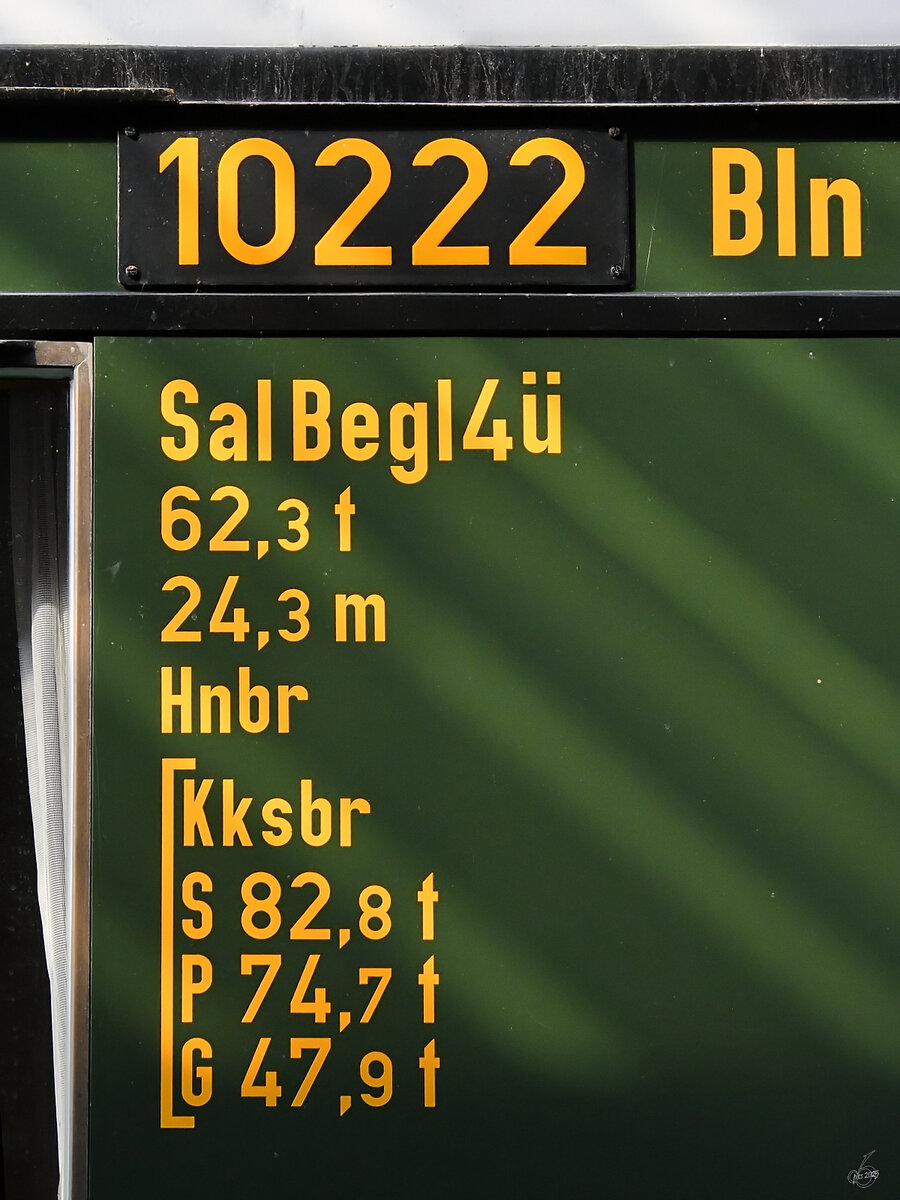 Die Beschriftung an einem 1958 gebauten dreiachsigen Umbauwagen mit Gepäckabteil, so gesehen Ende April 2025 im Eisenbahnmuseum Bochum.