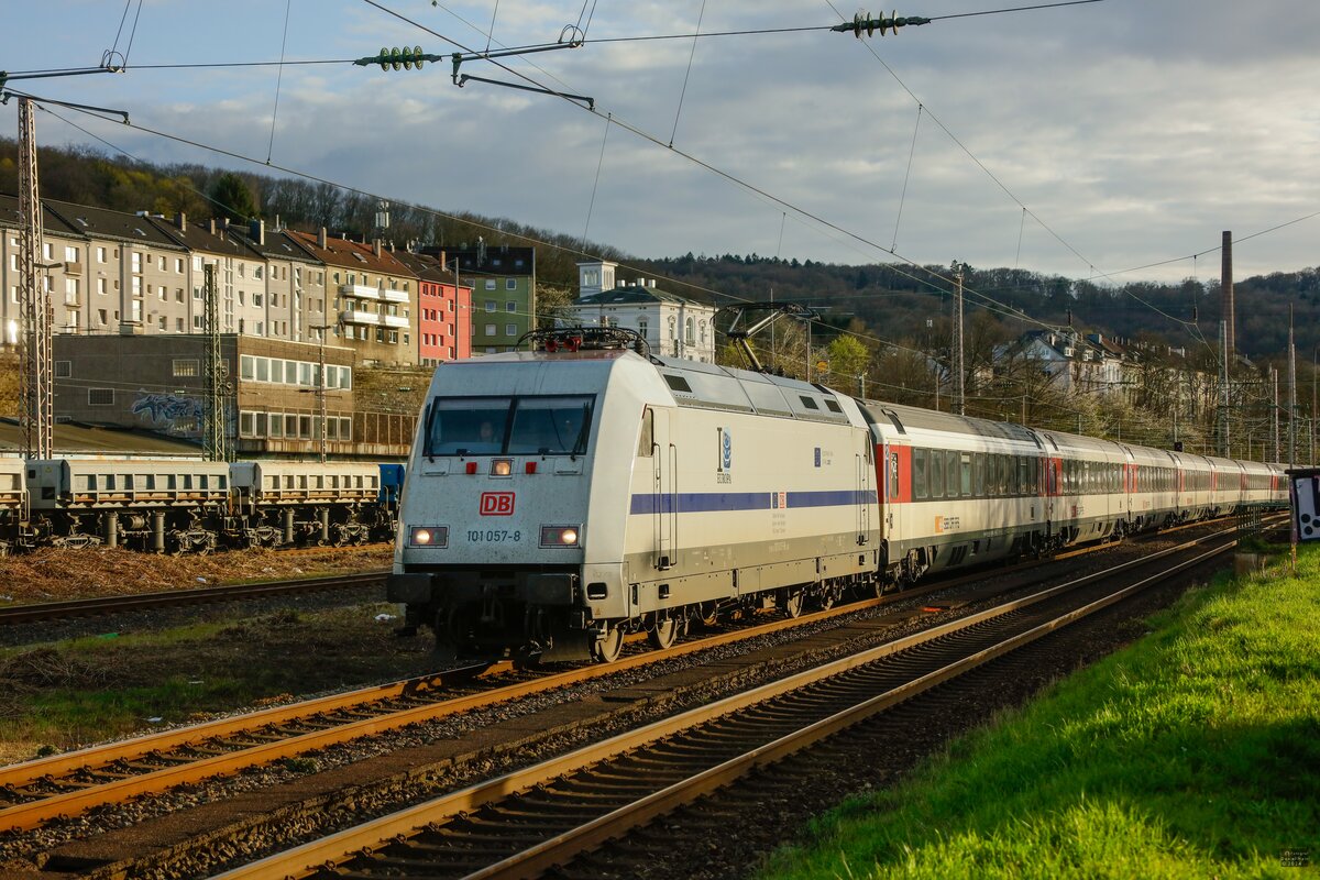 DB Fernverkehr AG [D] mit der BRCE Vectron "X4 E - 794" [NVR-Nummer: 91 80 6193 794-5 D-DISPO] und EC Richtung Polen am 06.04.24 Höhe Bahnhof Berlin Hirschgarten. Lothar Stöckmann