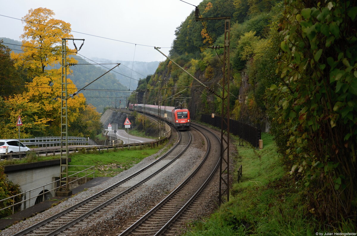 Ein Taurus Sandwich hatte der EC 113 am 03.10.2022 auf seinem Weg von Frankfurt Hbf nach Klagenfurt Hbf. Hier aufgenommen auf der Geislinger Steige Julian Heidingsfelder