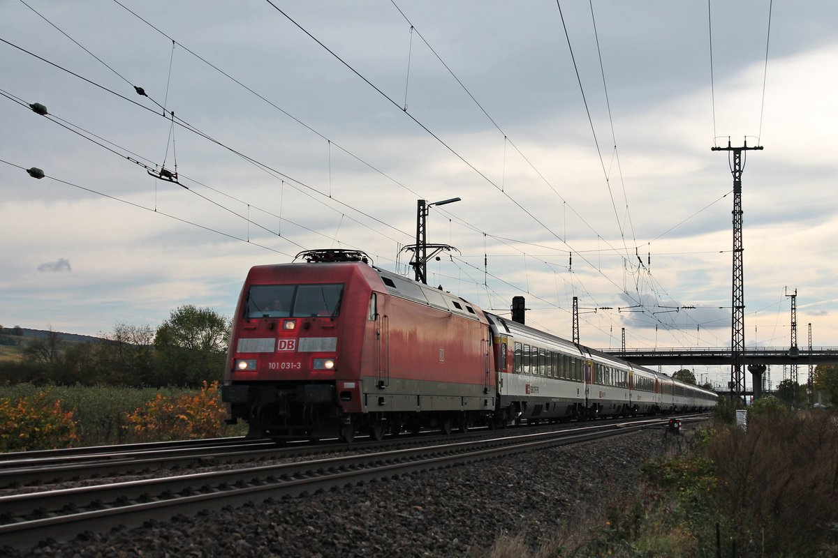 Am 26.10.2017 bespannte 101 031-3 den EC 206 (Zürich HB - Frankfurt (Main) Hbf), als sie bei Müllheim (Baden) in Richtung Buggingen fuhr. Tobias Schmidt