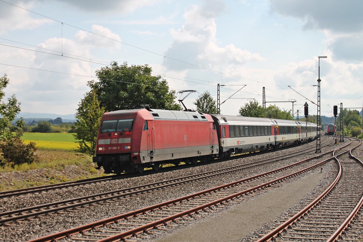 Mit einem IC (Zürich HB - Stuttgart Hbf) fuhr am 20.09.2017 die 101 092-5 durch den Bahnhof von Welschingen-Neuhausen in Richtung Norden. Tobias Schmidt