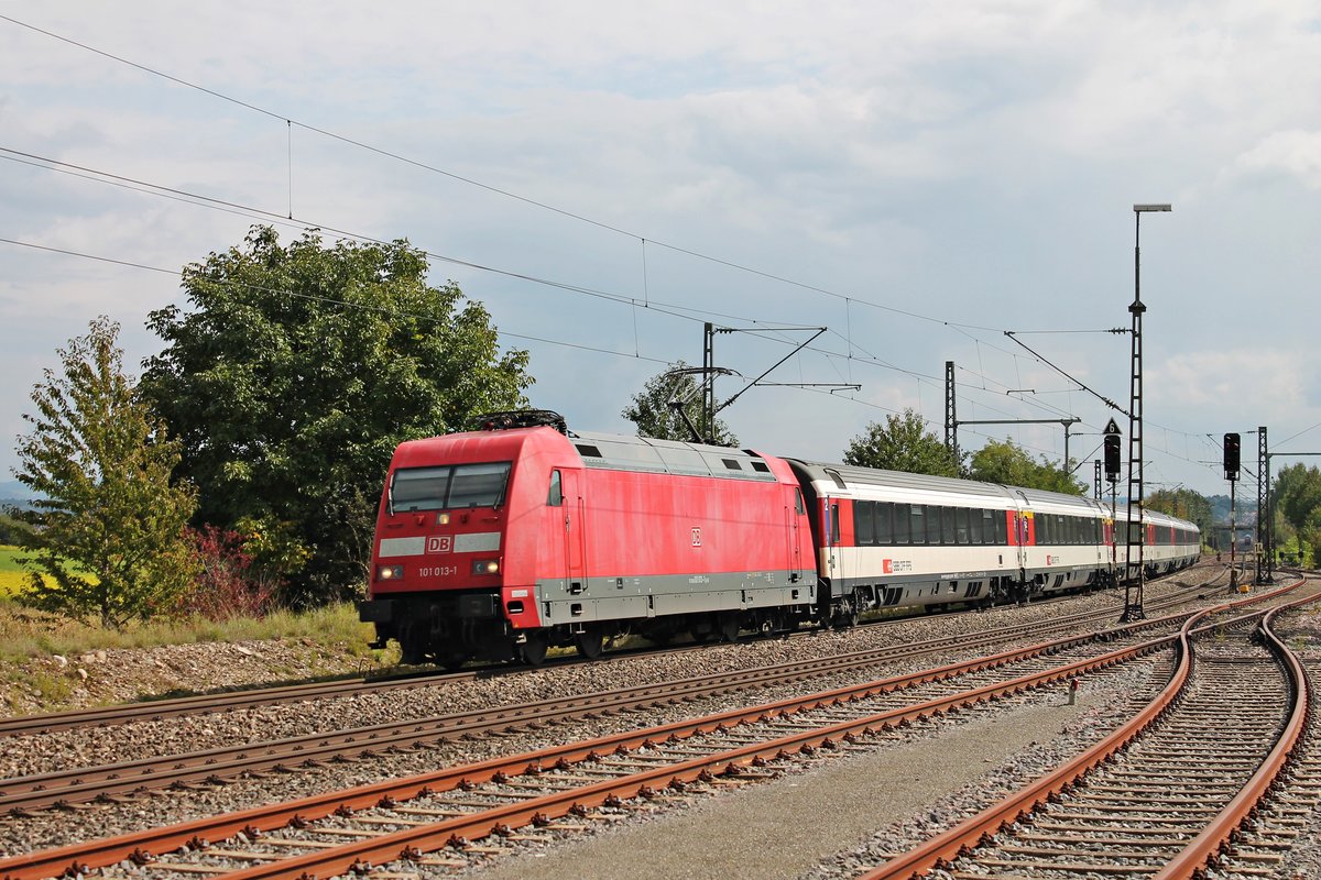 Mit einem IC (Zürich HB - Stuttgart Hbf) fuhr am 20.09.2017 die 101 013-1 erneut durch den Bahnhof von Welschingen-Neuhausen, diesmal aber in Richtung Norden. Tobias Schmidt