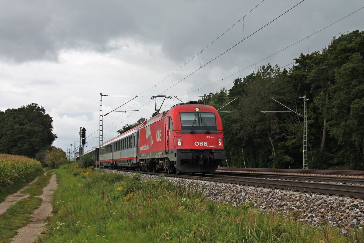 Am 12.09.2017 bespannte 1016 037 zusammen mit der 1016 047, welche am Zugschluss schob, den EC 113 (Frankfurt (Main) Hbf - Klagenfurt Hbf) als sie bei Zorneding in Richtung Rosenheim/Salzburg fuhren.