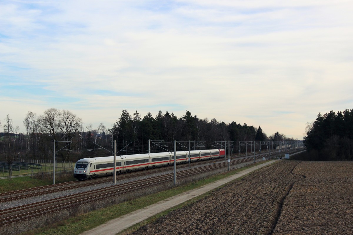 Eine Lok der Baureihe 101 wird mit dem  ex-Metropolitan  ICE 1008 in Kürze den Bahnhof Bamberg erreichen (29.03.2014)