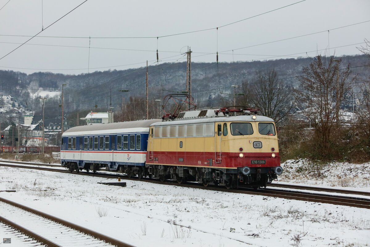 SSB Stuttgart__Verschwundene Strecken__Weinberge sind auch im Winter reizvoll: GT4 699 + BTw auf Betriebsfahrt vor verschneiten Weinbergen der Neuen Weinsteige.__20-03-1975 Klaus-Erich Lisk