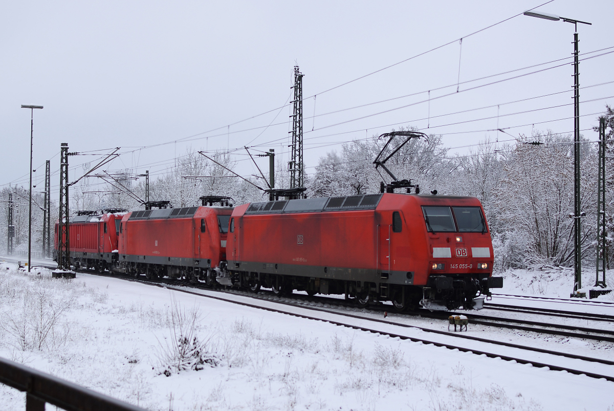 145 055, eine weitere 145 und 187 119 am Zugschluss fahren am 18. Februar durch Westerstetten Richtung Stuttgart.