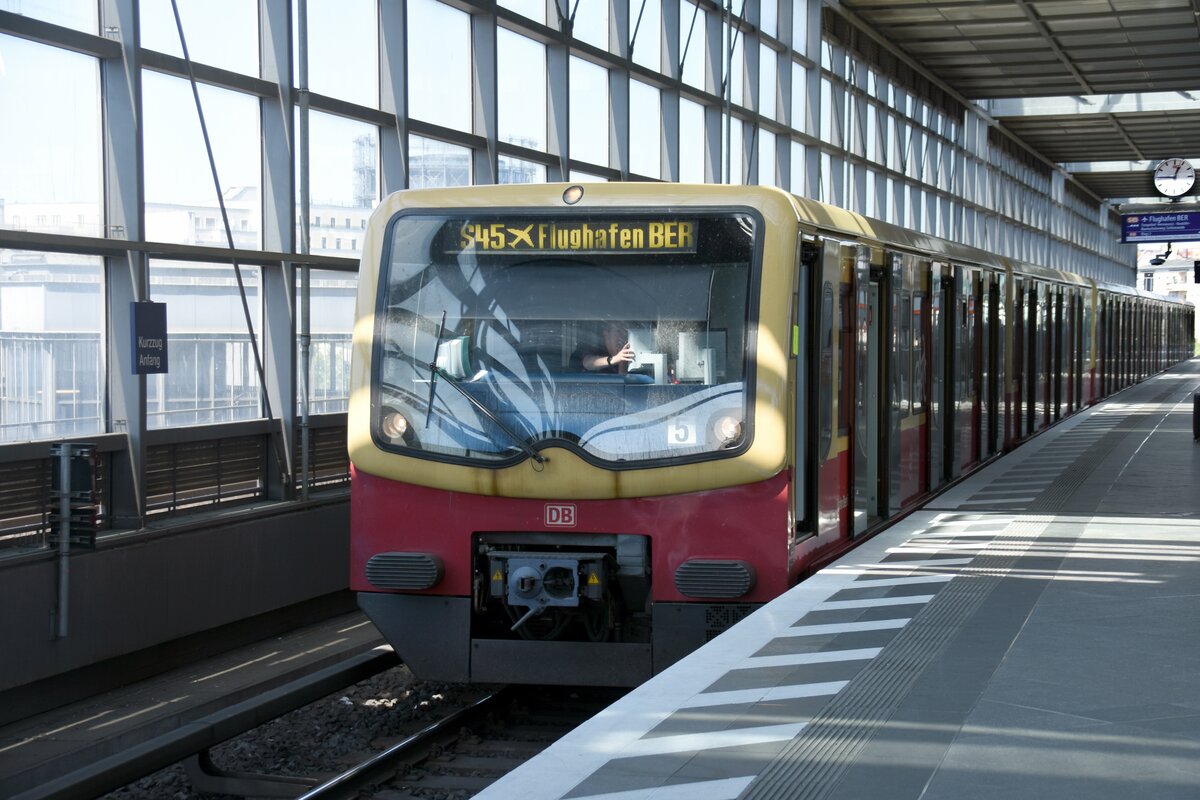 481 xxx der S-Bahn Berlin mit Ausfahrt der S7 nach Ahrensfelde und Einfahrt der S75 nach Warschauer Straße, Berlin-Ostkreuz am 11.03.2024. Mit der S Station Rummelsburg im Hintergrund. Lugi