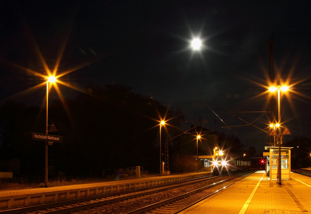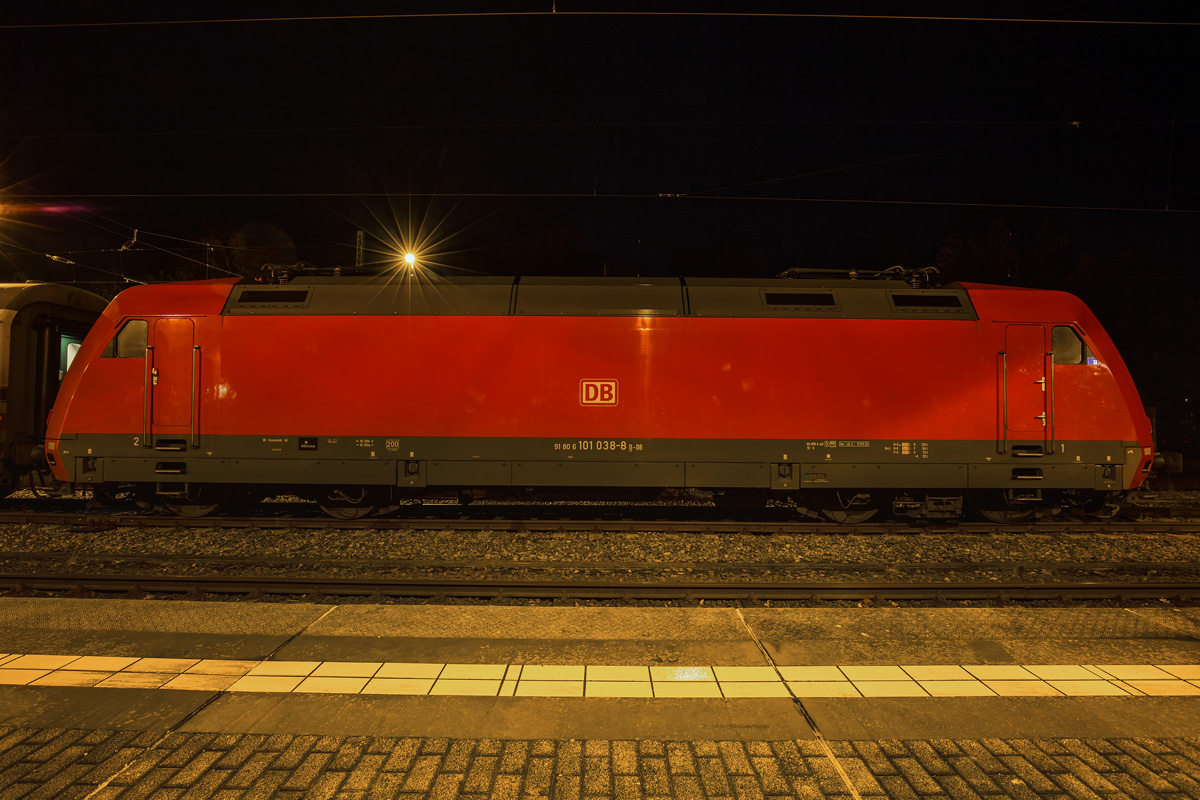 Blick auf den 1941 erbauten Wasserturm im Bahnhof von Lichtenfels am 08.08.2016. Sein ursprünglicher Zweck diente ausschließlich der Wasserversorgung von Dampflokomotiven, heute wird er nur noch bunt beleuchtet. Markus K.