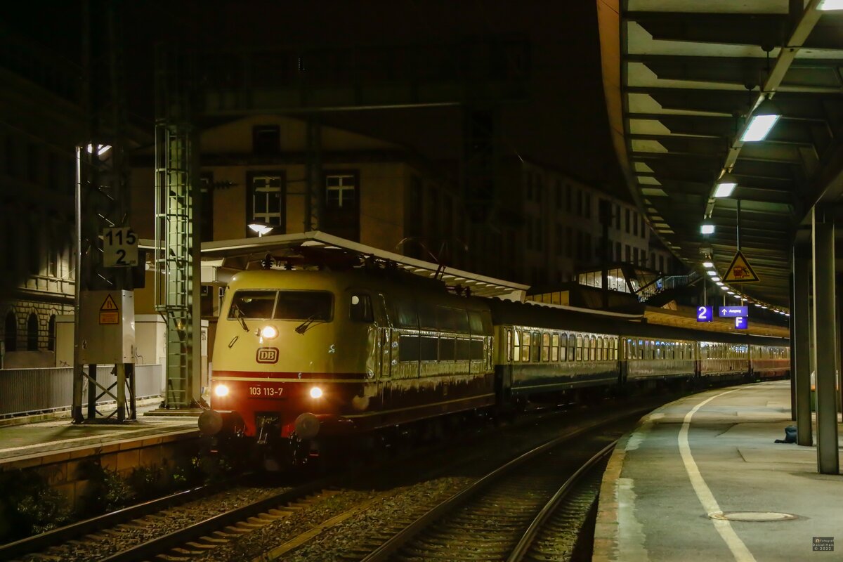 DB 103 113-7 mit Sonderzug nach Erfurt Hbf in Wuppertal Hbf, Dezember 2022.