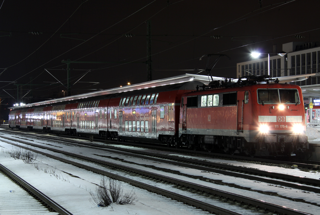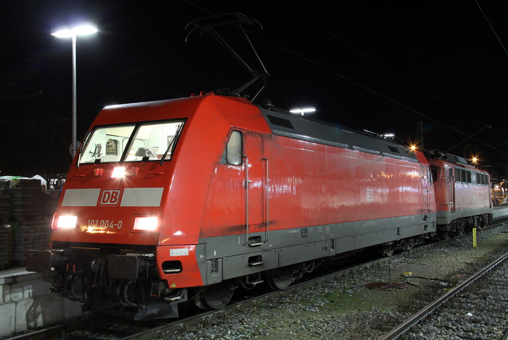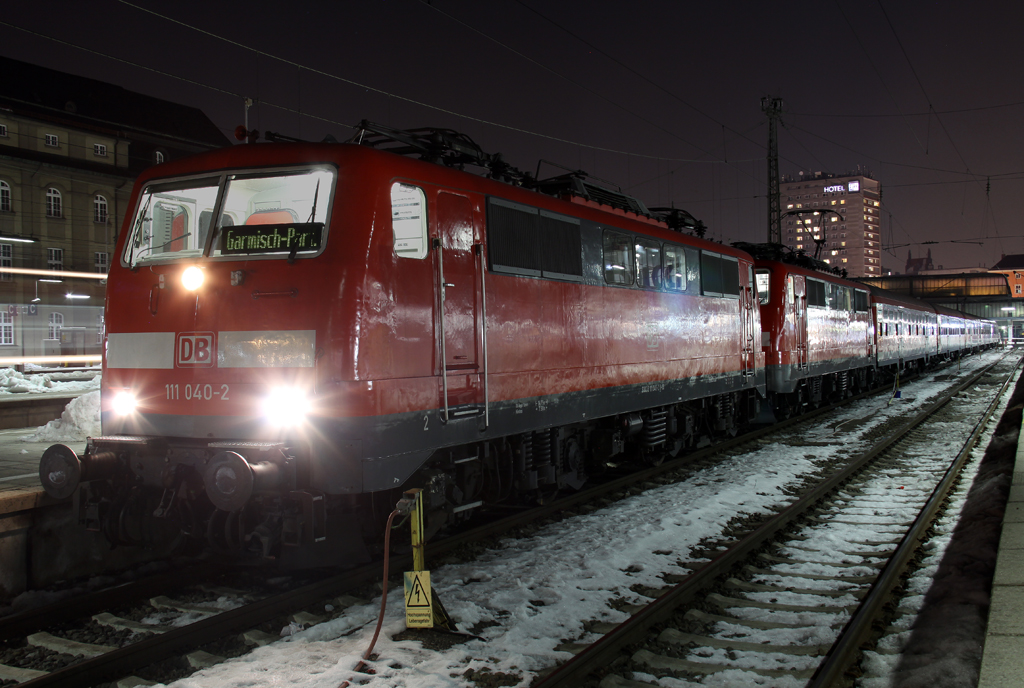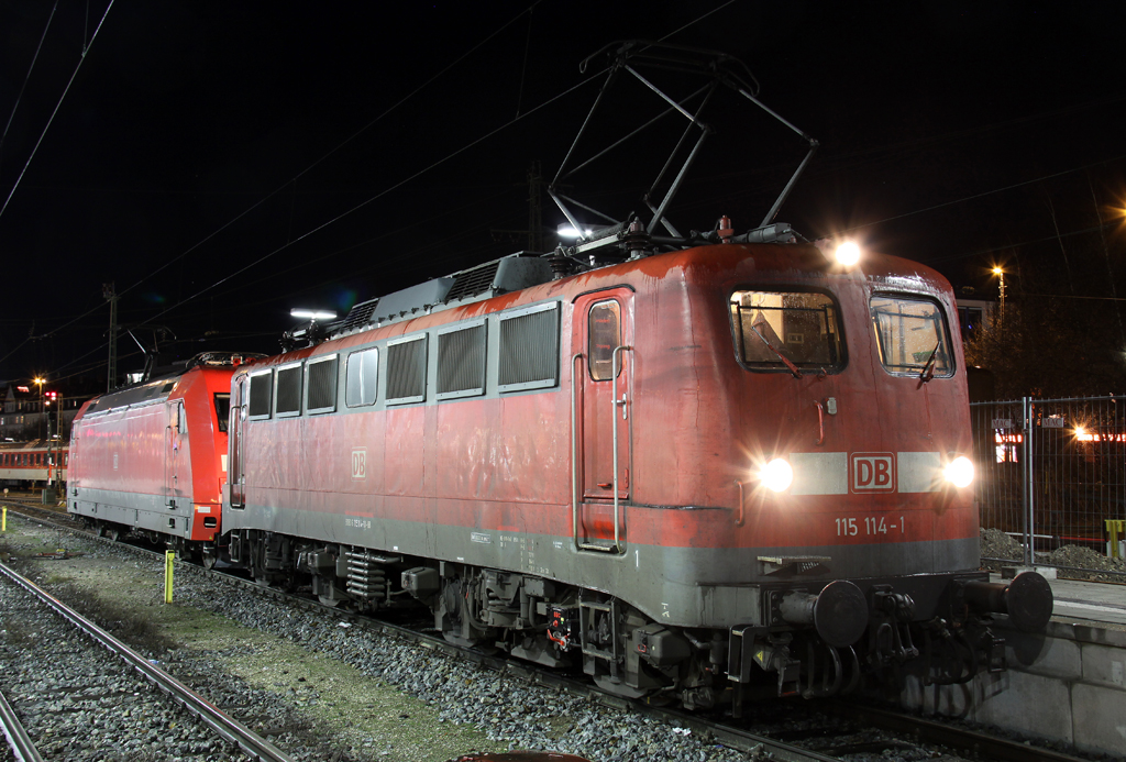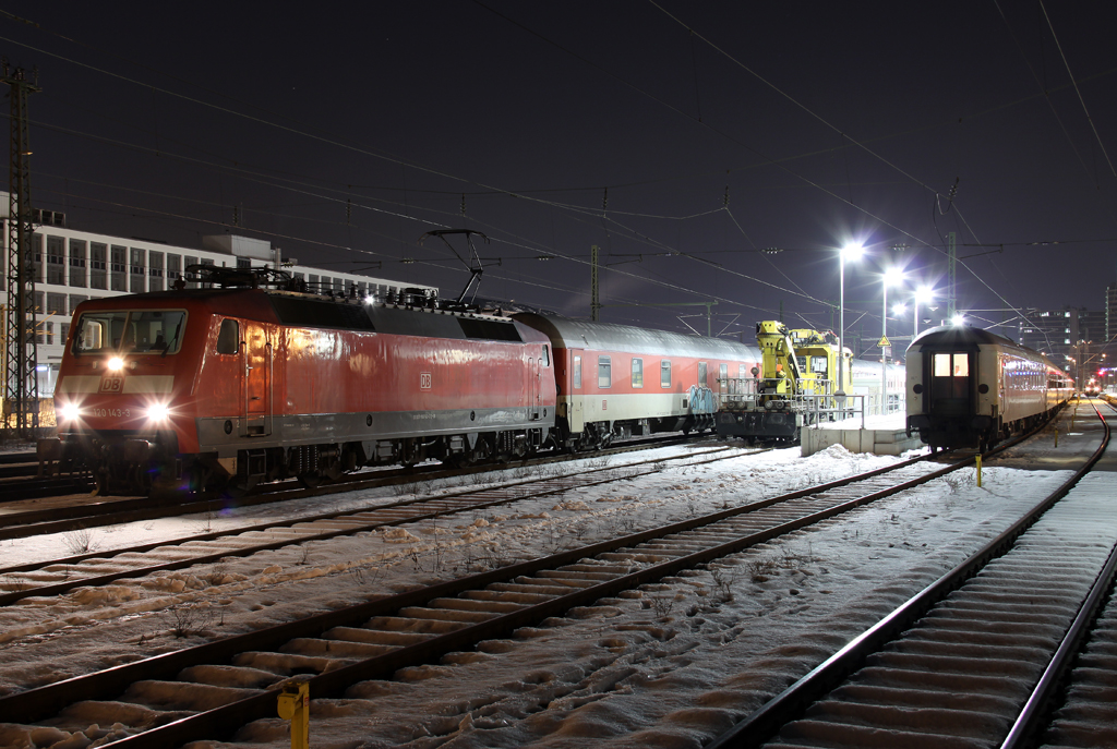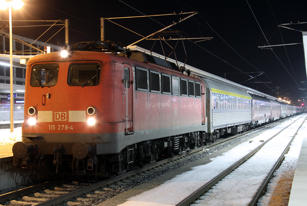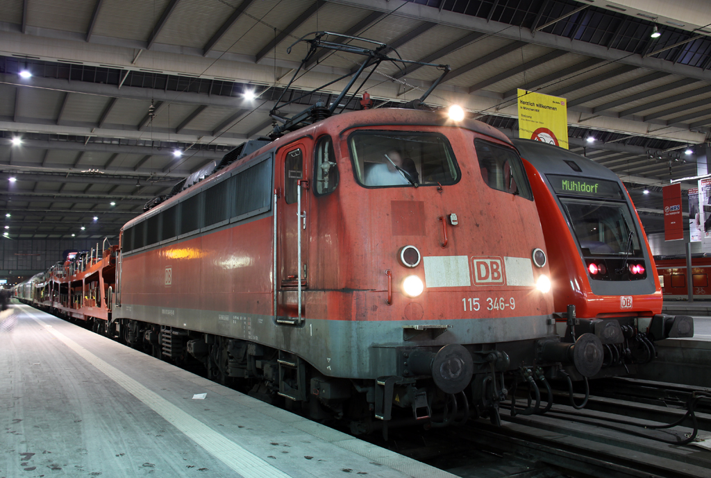 Na Endlich! Die 115 509-2 mit dem Autoslaaptrein von Bischofshofen nach Venlo steht planmäßig 20 Minuten in München Ost, aufgenommen am 16.02.2013 Eric Otten