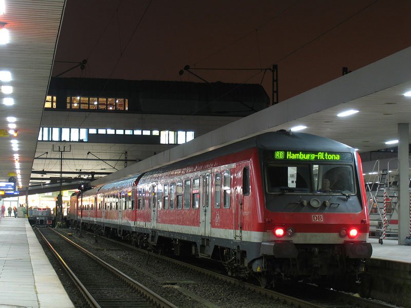 Auf Gleis 10 steht bereit die Regionalbahn RB 21228 nach Neumünster mit Steuerwagen Wittenberge an der Spitze und geschoben von 112 172; Hamburg-Altona, 16.01.2009