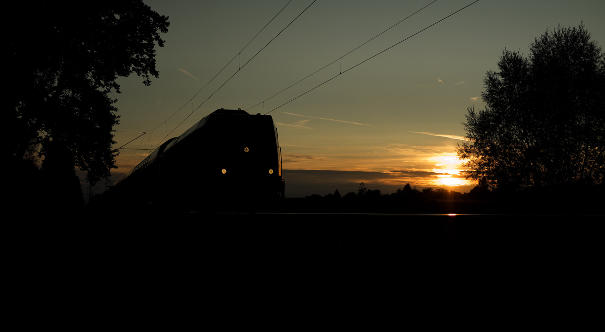 Am 26.8.2017 bei Sonnenuntergang verschleierten feine Wolkenschichten die Sonne und ermöglichten die Aufnahme des Triebzuges 440 201-2 der von Passau Hbf nach München Hbf in Langenisarhofen der Abendsonne entgegenfährt. Matti Morelli