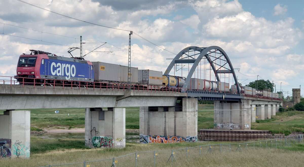 185 594-9 wurde als Tfzf Richtung Halle (Saale) oder Leipzig auf der Muldebrücke in Eilenburg festgehalten.