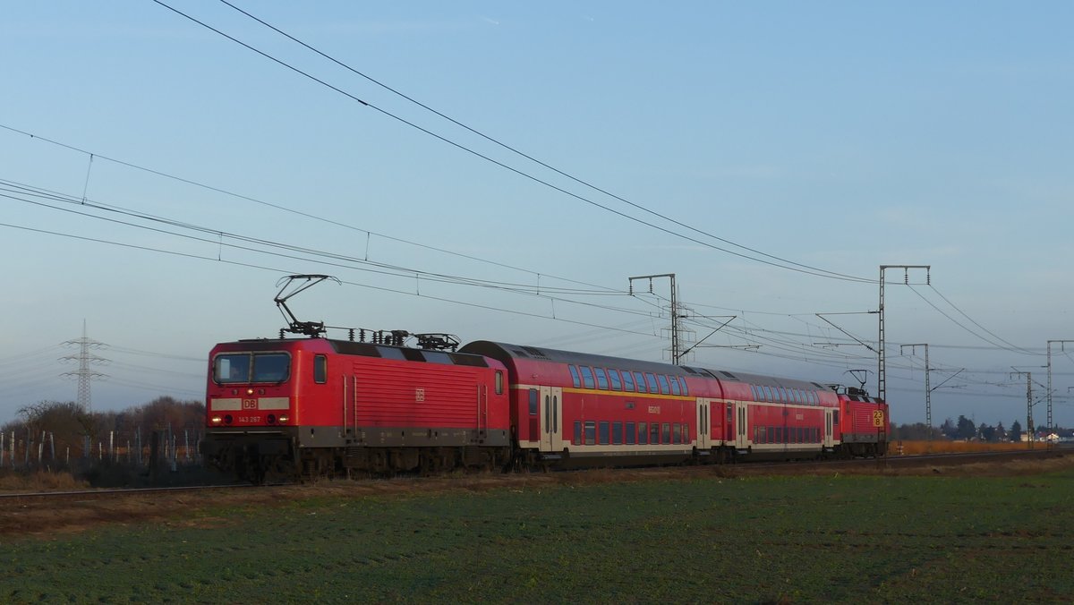 In den letzten Einsatztagen der DB Regio auf der RB75 Wiesbaden - Aschaffenburg kam es u.a. zum Einsatz dieser Sandwich Garnitur, die hier als RB75 nach Wiesbaden zwischen Weiterstadt und Klein-Gerau zu sehen ist. Aufgenommen am 23.11.2018 16:51