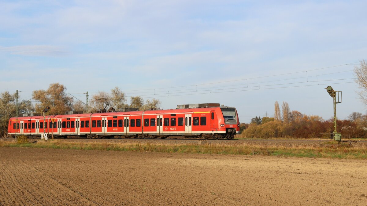 Am 15.11.20 fährt 425 090  Saarlouis  als RB 2 von Biblis nach Mannheim Hbf. Zum Fahrplanwechsel im Dezember 2020 wurde diese Linie in das Netz der S-Bahn Rhein-Neckar aufgenommen und verkehrt seitdem als S 9. Zum Einsatz kommen neue Fahrzeuge der Baureihe 463 (Siemens Mireo). Aufgenommen zwischen Biblis und Bobstadt.