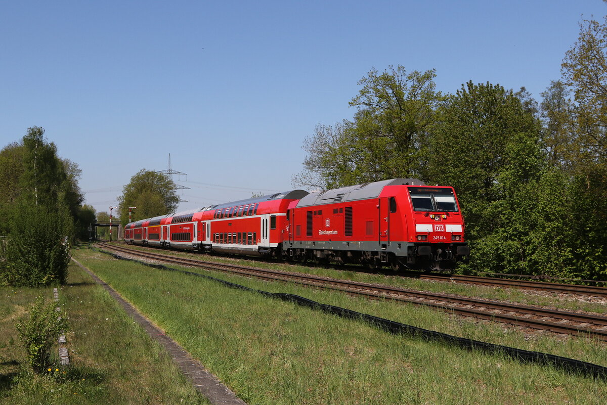 245 013 war schiebend in Richtung München unterwegs. Aufgenommen am 29. April 2025 in "Thann/Matzbach".