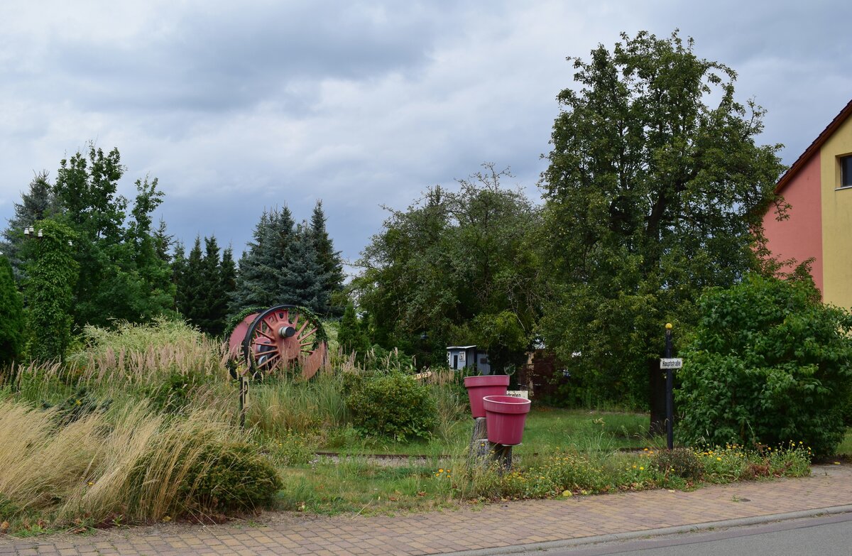 Nebenan im Garten des Eigentümers von Altmark Rail fuhr einst eine kleine Gartenbahn. Diese ist aber leider auch schon ziemlich zugewuchert. Dazu finden sich dort noch andere Sachen wie Pfeiftafeln oder die Achse einer Dampflok.