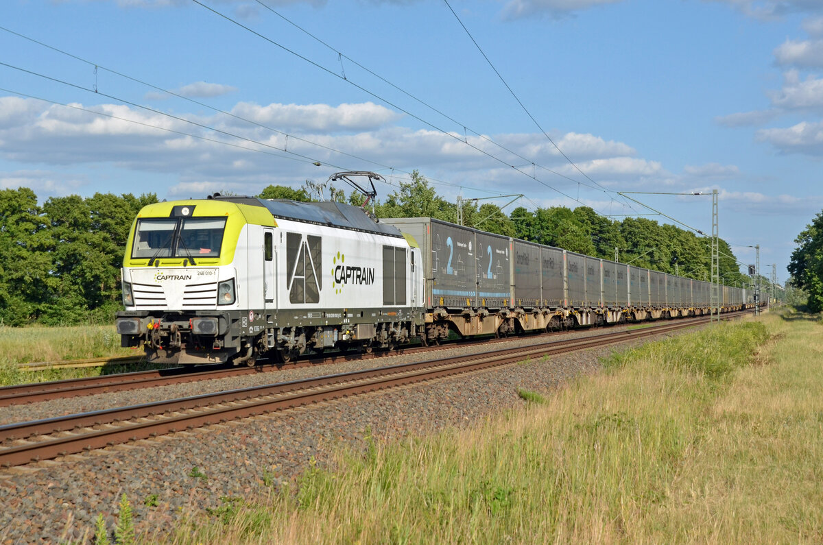 Mit dem Smartrail-Zug am Haken rollte 248 010 von Captrain am 19.06.25 durch Jütrichau Richtung Magdeburg.