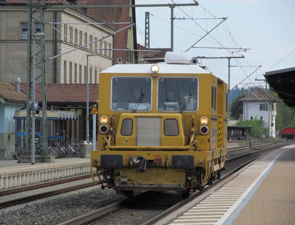 Gleisvormessmaschine EM-SAT 120 von Europool am 16.03.2013 in Aachen West. Gut zu sehen ist der selbstfahrende Satellit mit der Lasersendeeinheit. Mario Schürholz