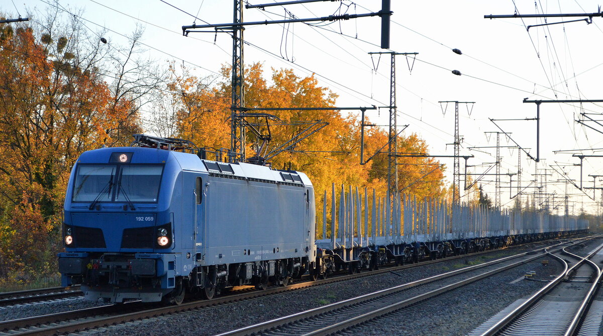 159 253 der FLEX schleppte am 02.10.25 einen Hochbordwagenzug durch Braschwitz Richtung Halle(S).