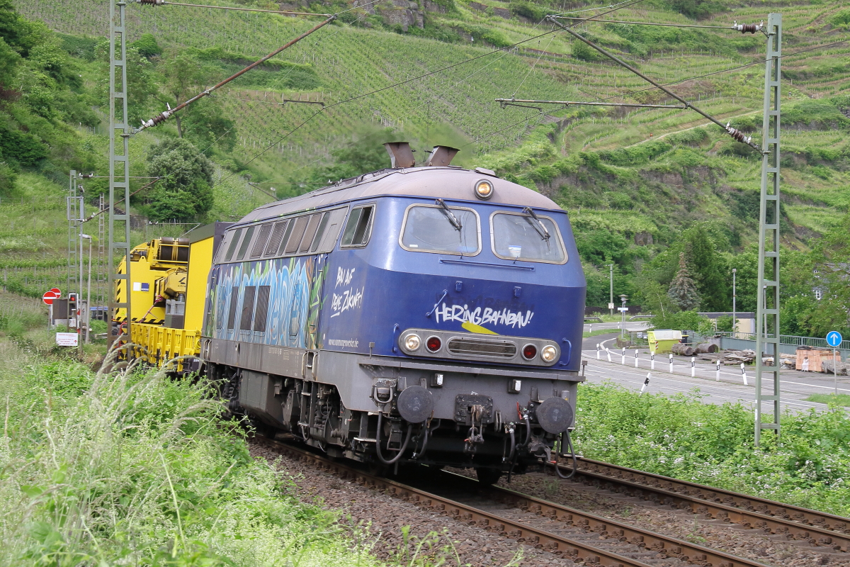 Hering Gleisbau Voith Gravita 261 004-6 mit Bauzug V200 007 am 22.06.19. Von einen Gehweg aus fotografiert. Die Bundespolizei hat die Fotografen überwacht damit nichts passiert Daniel Oster