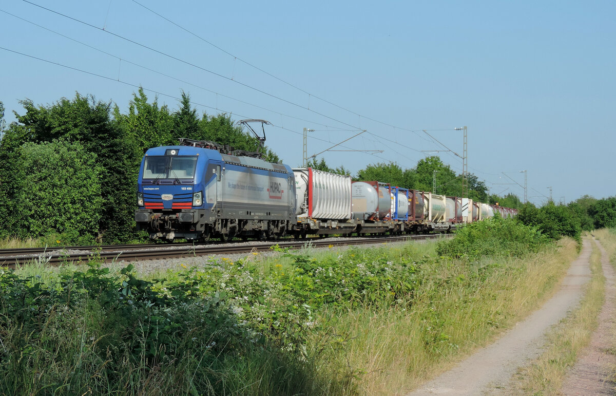 Lahr/Schwarzwald -2. Juni 2023 : Hupac 193 490 mit einem KLV in Richtung Offenburg.