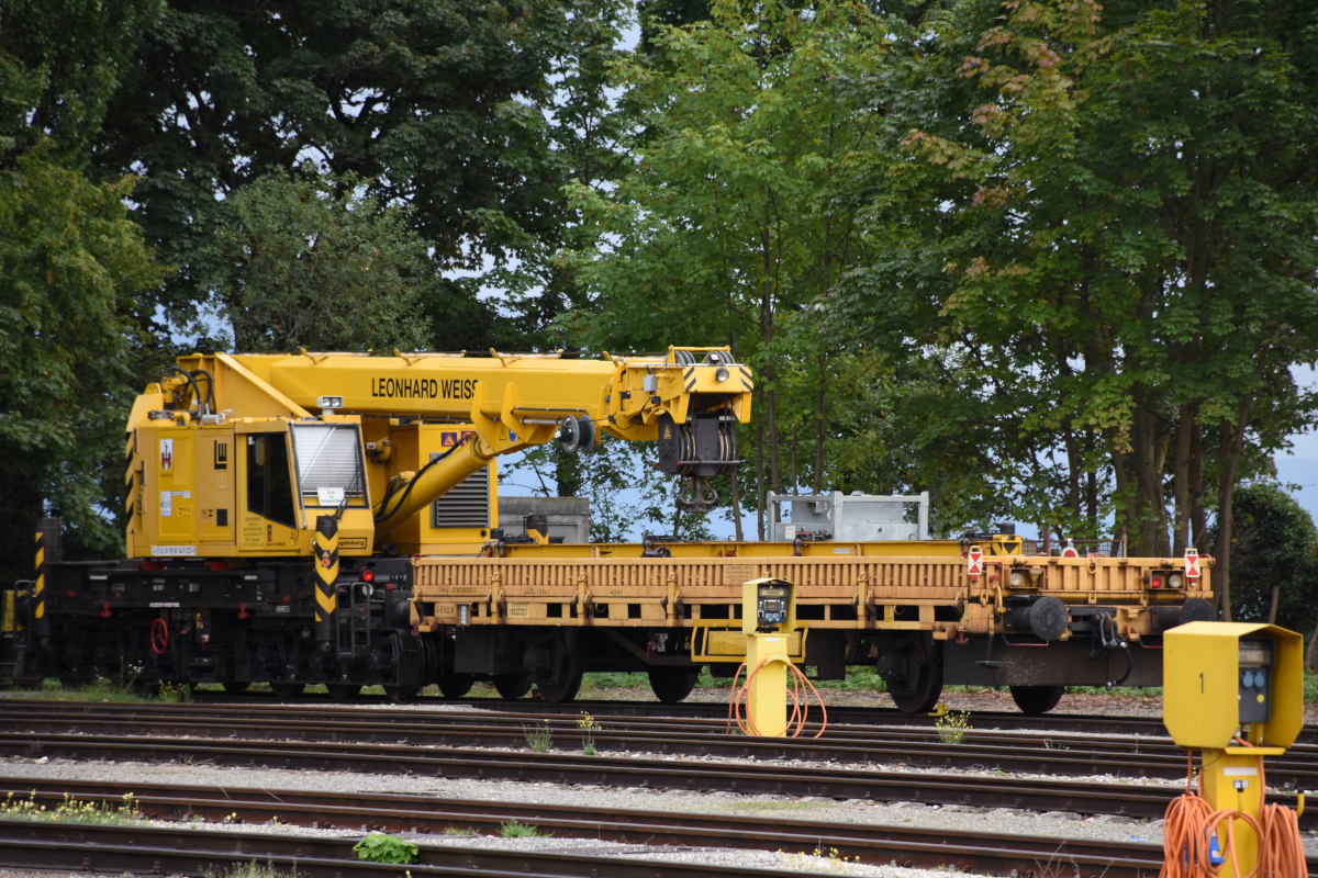 Im Bauzug von 275  817 hing am 17.09.24 dieser Kirow-Kran, er trägt die Nummer 99 80 9419 019-1.