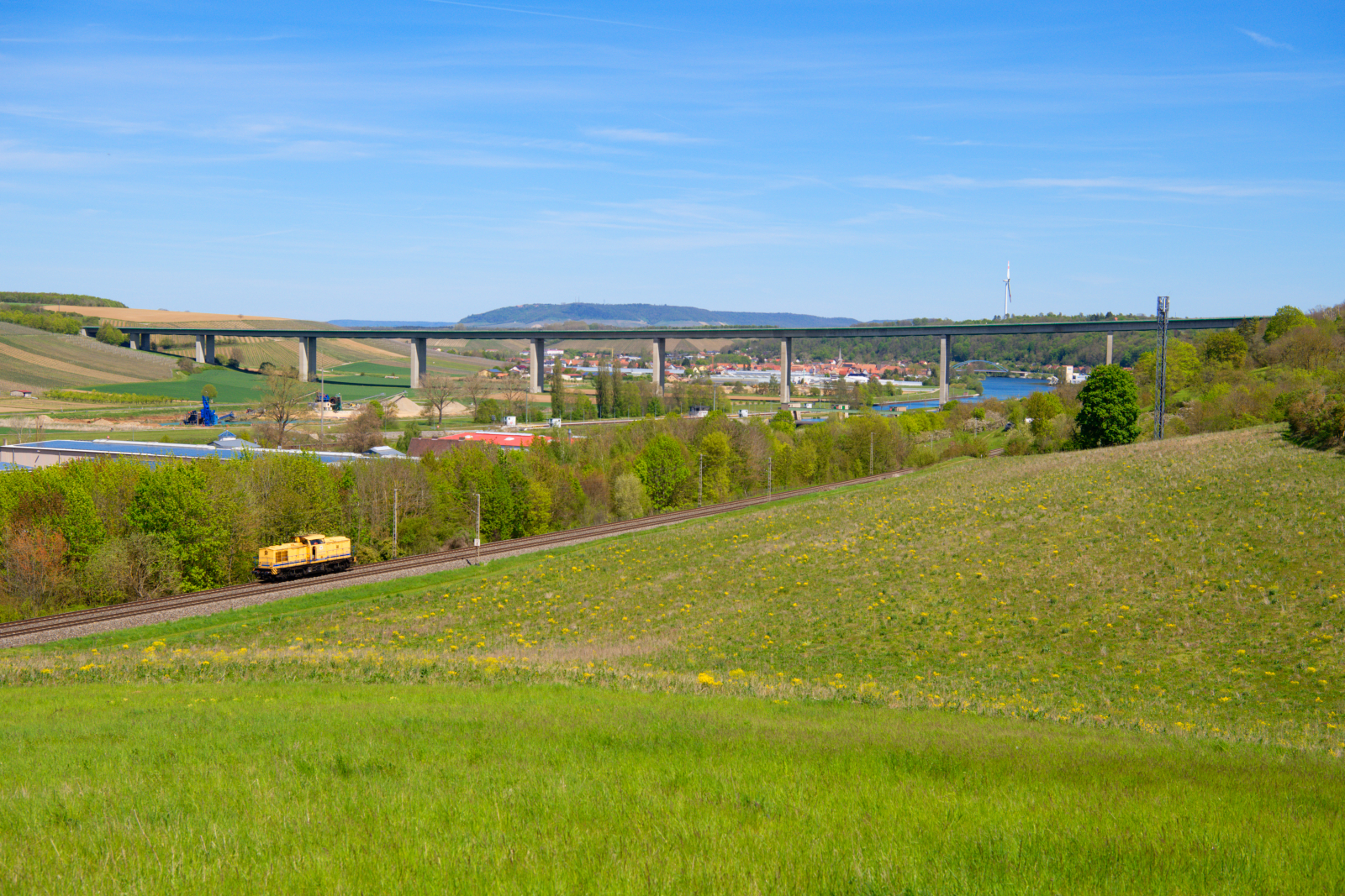 Diese Diesellok der Baureihe 214 von Leonhard Weiß fährt als LZ in Richtung Würzburg. Grüße noch an den TF!
