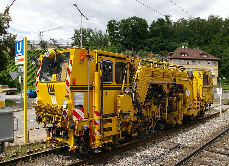 Gleisneubau am Eckartshaldenweg mit Unterstützung durch die Fa. Leonhard Weiss Bauunternehmung mit Transportwagen 587607 am 11.07.2011.