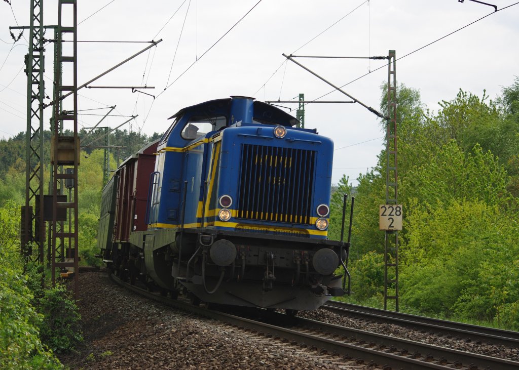 Eine V100 der MWB kam am morgen des 31.03.2010 durch Stolberg Hbf mit einem relativ neuen Bauzug.