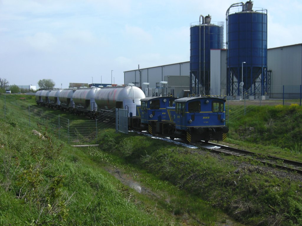 Die beiden kleinen MWB-Lok`s V241 und V250 sind nach wie vor im Betonummandelungswerk in Mukran im Einsatz.