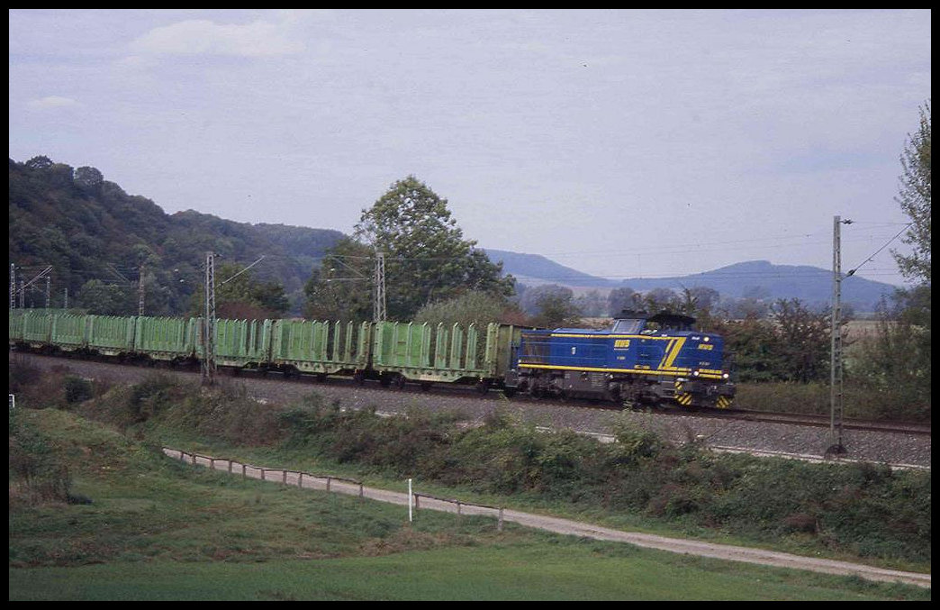 MWB 1020.041 war am 5.9.2004 mit einem Sonderzug auf der Rollbahn unterwegs zur großen Fahrzeugausstellung in Osnabrück. Um 9.40 Uhr erreichte sie hier die Landesgrenze von Niedersachsen am Ortsrand von Hasbergen. Gerd Hahn
