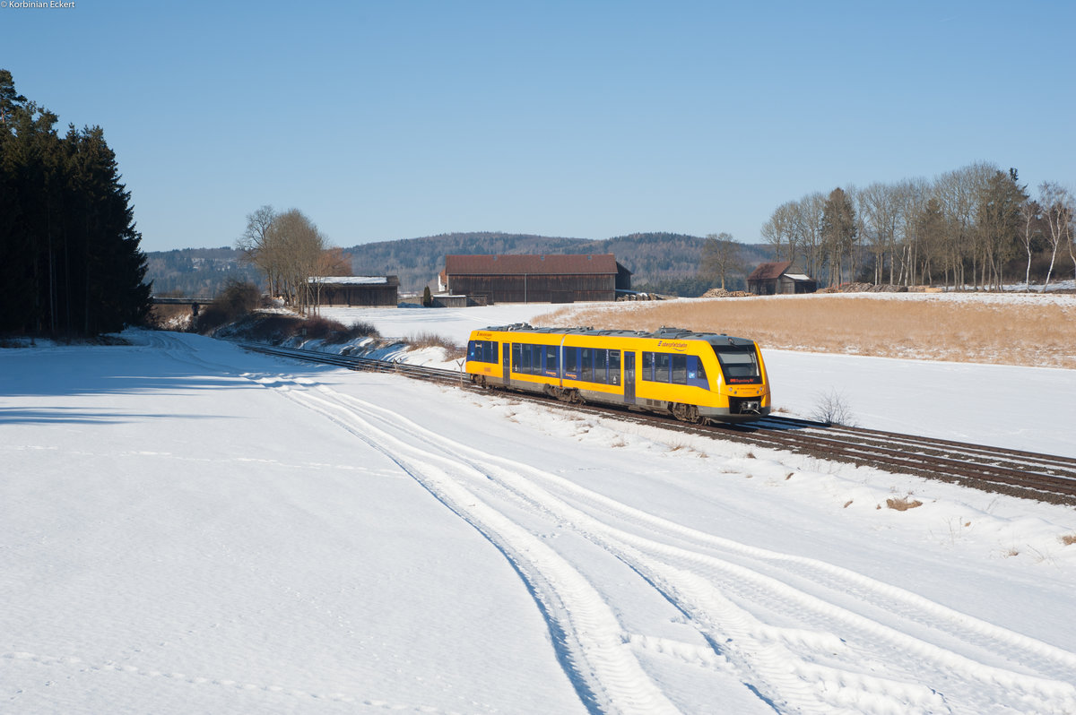 Gruß zurück an das Nette Personal der beiden Oberpfalzbahn Triebzüge 1648 702 und 701. Sie fuhren am 25.02.2016 in Richtung Süden durch Wehretal-Reichensachsen. Jens Baumhauer