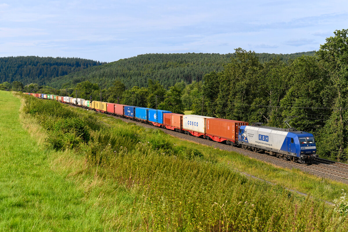 Die Abstellung der Baureihe 145 bei DB Cargo ist eigentlich beschlossene Sache. Bei den konzerneigenen Tochtergesellschaften stehen diese ersten Vertreter der Traxx-Plattform weiterhin rege im Einsatz. Ironischerweise werden sie auch für Dienste von DB Cargo herangezogen. So z.B. die 145 010 der RBH, die am 19. Juni 2025 den Neuwagen-Transportzug GAG 63166 einmal quer durch die Republik nach Bremerhaven Speckenbüttel beförderte. Bei Nüst in der osthessischen Vorderrhön konnte ich den besagten Zug fotografieren. Christoph Schneider