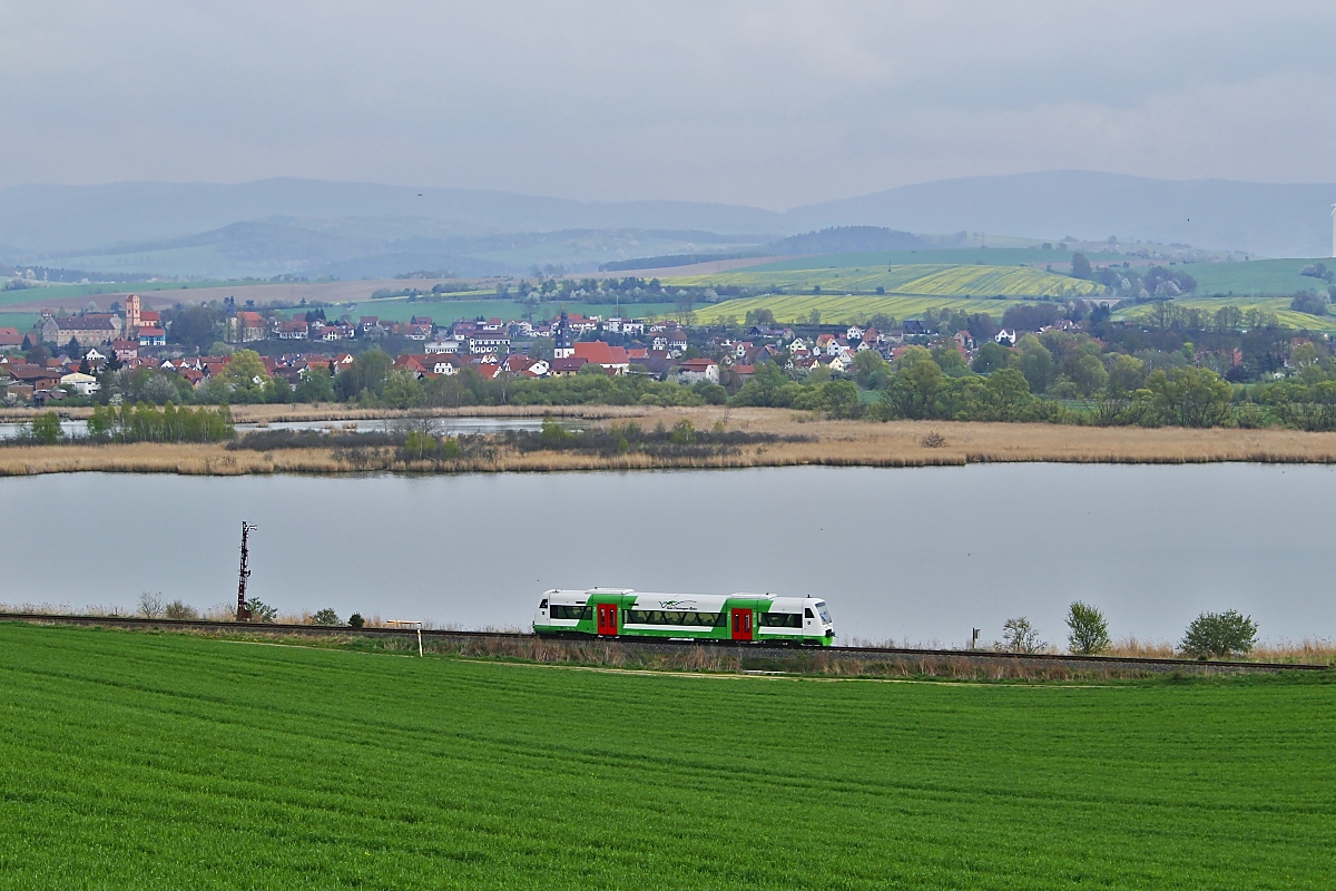 Als RB Eisenach-Neuhaus am Rennweg legte sich der STB VT107 in die Kurve,als Dieser am 05.April 2025,den Bahnhof Walldorf/Werra in Richtung Meiningen verließ.