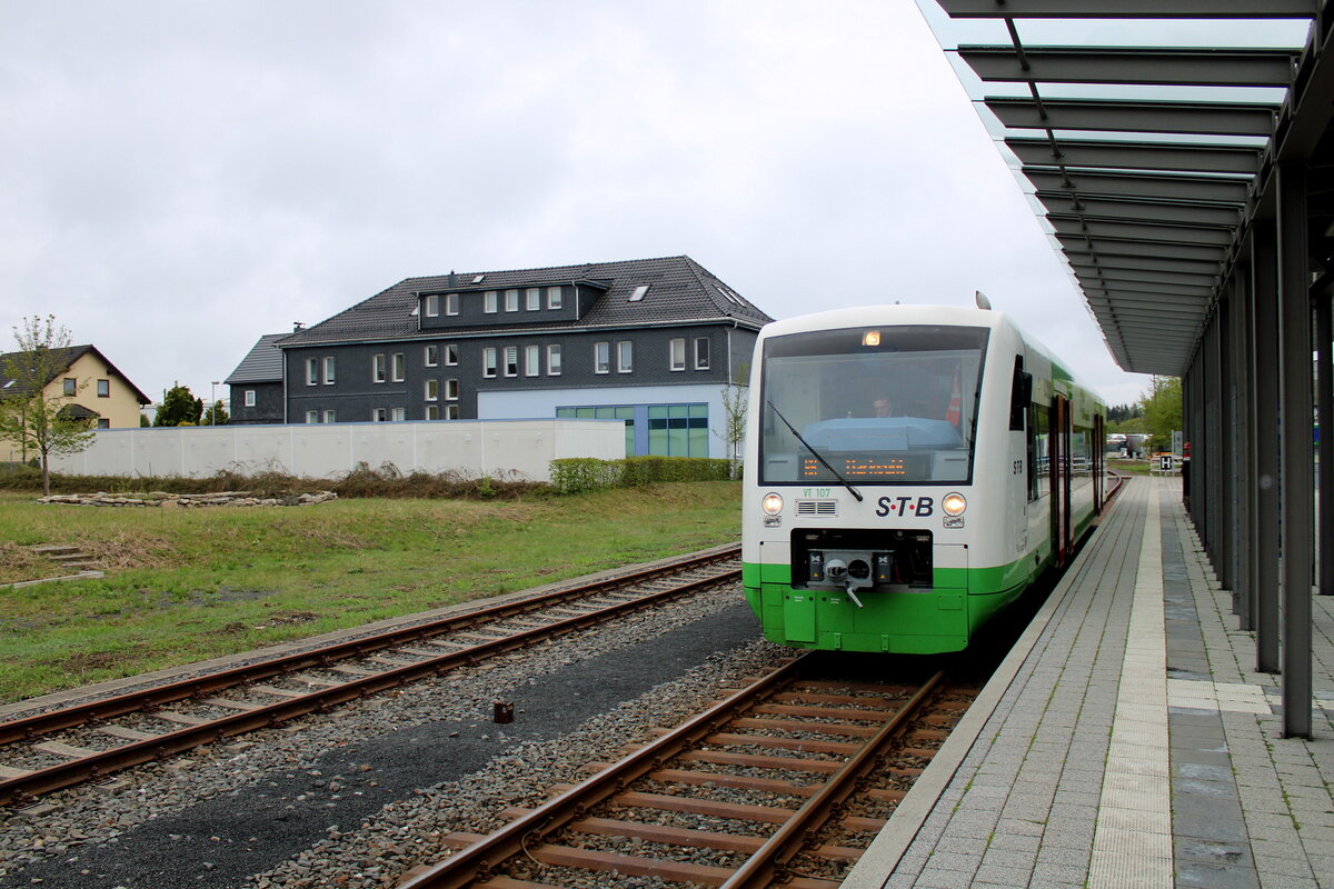 STB VT111 und VT106 sorgten,am 05.April 2025,für die Verbindung vom Rennsteig in die Landeshauptstadt Erfurt.Hier vor der Abfahrt im Bahnhof Rennsteig.