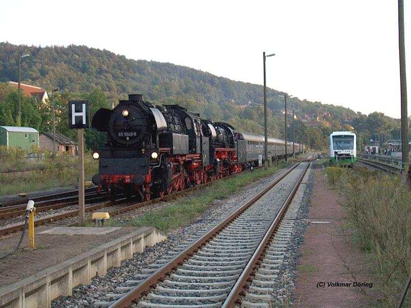 STB 650 515-9 und 650 058-0 stehen im Bahnhof Neuhaus am Rennweg zur Fahrt als RB41 nach Sonneberg(Thür)Hbf. (01.10.2023)