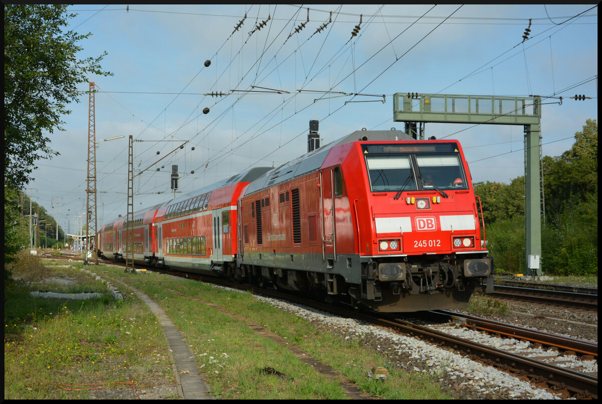 Am trüben 12 September 2024 steht 245 015 mit deren RB nach Mühldorf in München Ost abfahrtbereit.