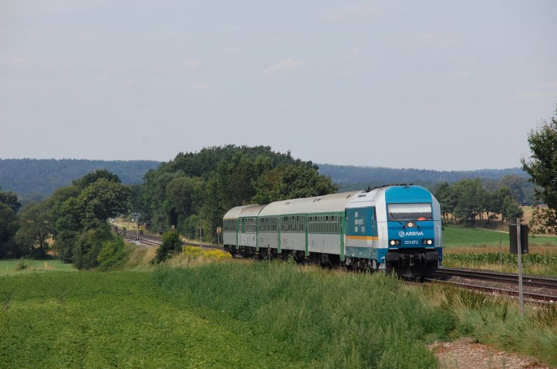 VT 03 und ein weiterer Desiro der Vogtlandbahn bilden den 86564 von Regensburg Hbf nach Hof Hbf, hier bei Schwandorf-Richt, 08.07.09 Björn G. Dietrich