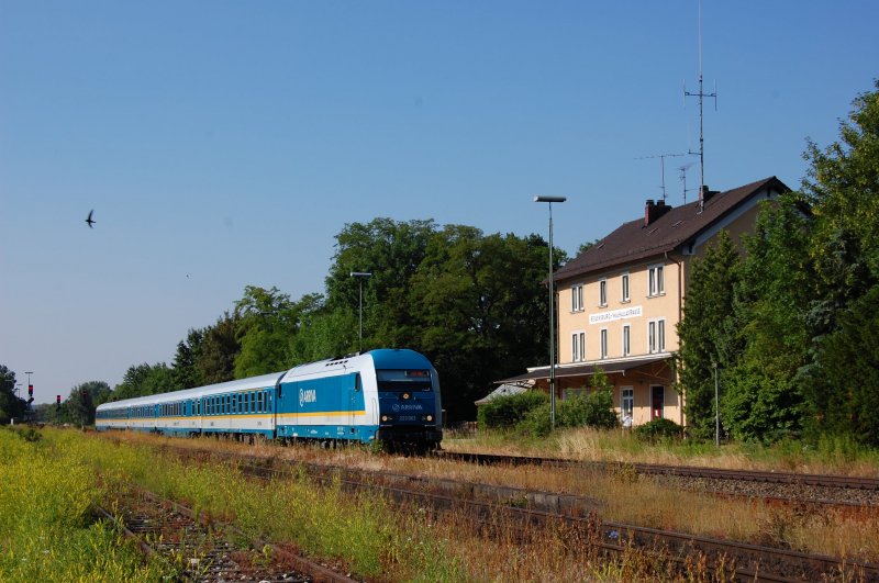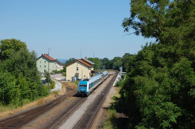 VT 16 und ein weiterer Desiro haben als VBG 86593, Weiden (Oberpf) - Regensburg Hbf, gleich Schwandorf erreicht, hier bei Irlaching, 08.07.09