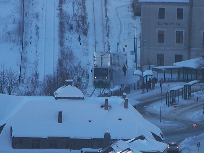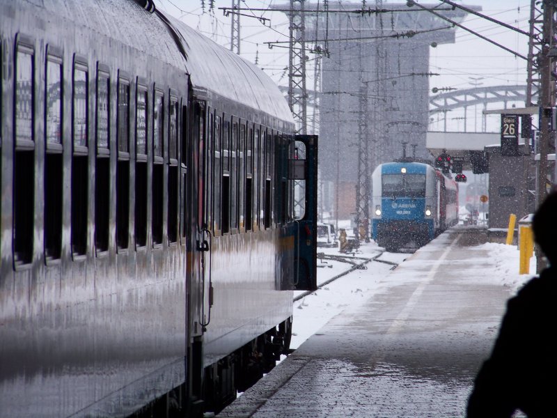 Der letzte Vogtland-Express von Berlin nach Adorf steht am 16.2.2009 in Riesa zur Abfahrt bereit. Passend dazu regnete es ununterbrochen. Leider hielt der Zug aus drei Desiros (Im Vordergrund VT23) sehr weit vorn am Bahnsteig, so dass mir nur ein Nachschuss gelang. Mittlerweile fährt der VX glücklicherweise wieder. Christopher Pätz